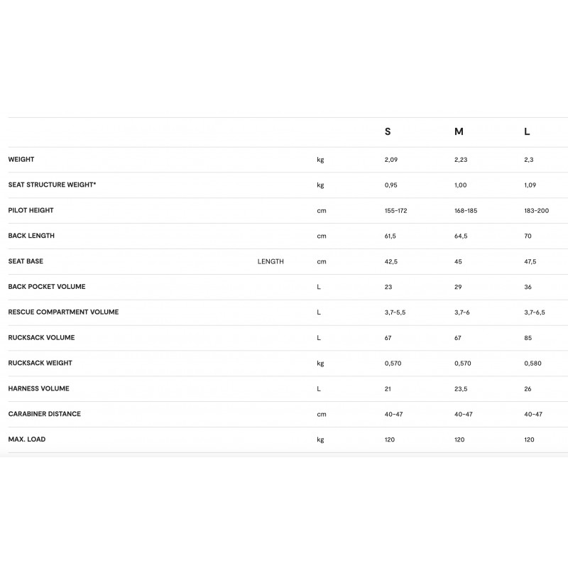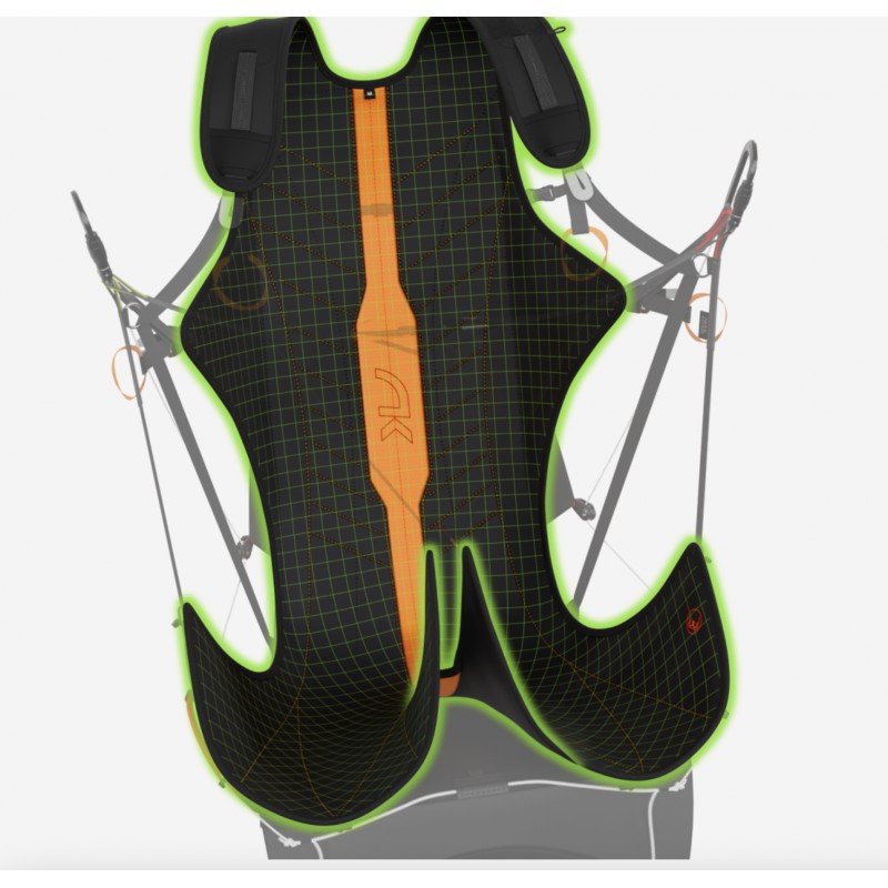 Ideal für Hike & Fly, Thermikfliegen und Soaren – es lässt sich auch gut zum Speedflying verwenden. Ausgestattet mit Airbag und einem integrierten Notschirmfach ist es leicht, ergonomisch, kompakt und sicher.