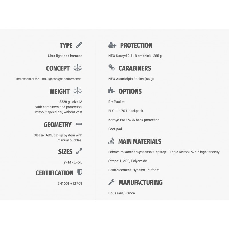 Dieses Gurtzeug wurde für Ultraleichtfliegen und Höchstleistung entwickelt und konzentriert sich auf das Wesentliche. Mit seiner extrem geringen Dicke, der aerodynamischen Verkleidung und der Aero-Jacke sorgt es für ein sauberes Profil im Flug und verfügt über einen integrierten Rettungsschirmcontainer.