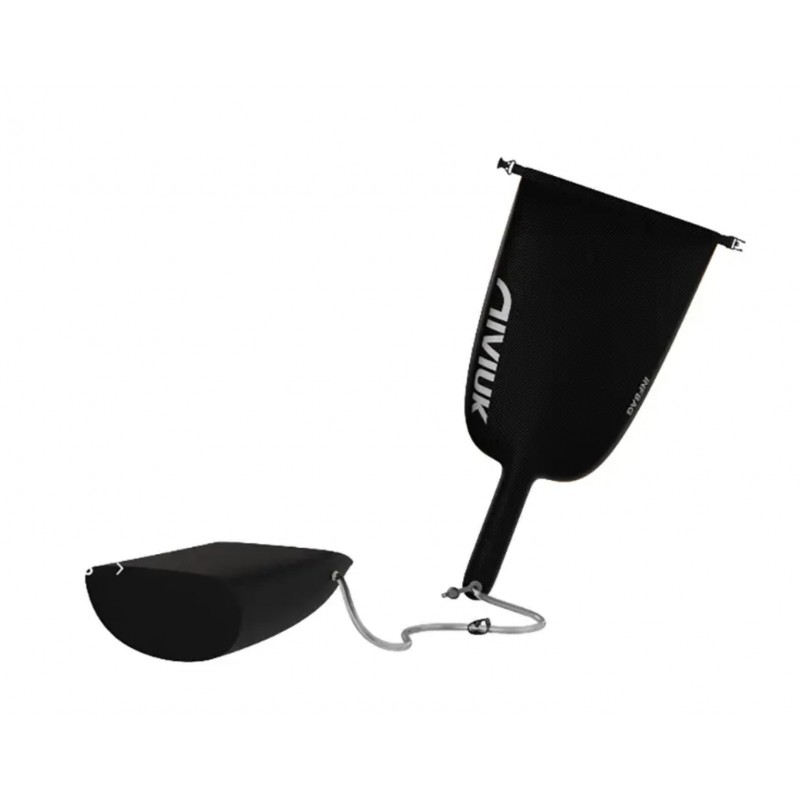 Er wird mit dem aufblasbaren Beutel „Infbag“ geliefert, der das Aufblasen erleichtert und gleichzeitig als Kompressionsbeutel zum Verstauen und Transportieren des Gurtzeugs dient.